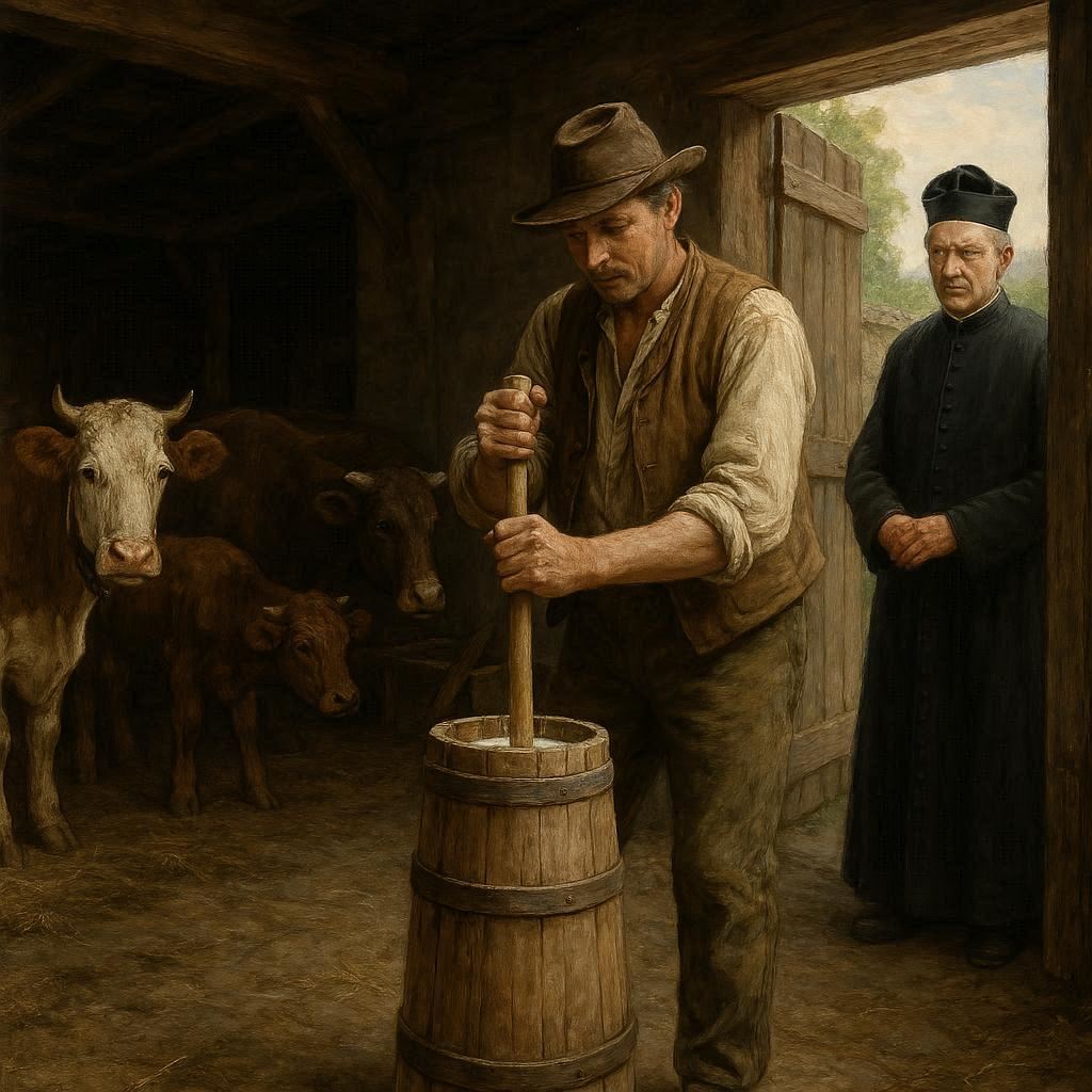 Una famiglia possedeva otto vacche da latte, iniziarono a riscontrare difficoltà nel fare il burro, che tardava a formarsi nonostante gli sforzi. Preoccupati, parlarono con un conoscente, il quale suggerì che potesse trattarsi della fisica. Decisero quindi di chiedere aiuto a un esperto, che, dopo aver esaminato la zangola e le vacche, capì che il problema non riguardava gli strumenti, ma gli animali stessi. Con un crocifisso tracciò segni nell'aria per contrastare l'influsso maligno e chiese se avessero sospetti su qualcuno. Individuarono una donna che viveva nelle vicinanze e si recarono nei pressi della sua abitazione. Giunti a una certa distanza, l'esperto percepì un'energia negativa emanata dalla casa e concluse che fosse lei la responsabile, dicendo che nella notte non sarebbe riuscita a stare ferma. Tornati a casa, notarono che anche la bambina più piccola era inquieta e l'esperto confermò che anch'essa era stata colpita dalla fisica. Durante la notte, il capofamiglia osservò che la donna sospettata non trovava pace, spostandosi continuamente in casa e fuori. Dal giorno successivo, tutto tornò alla normalità: le vacche erano serene, il burro si formava facilmente e la bambina dormiva tranquilla. La masca aveva perso il suo potere sulla famiglia, grazie all'esperto che giungeva da Torino.